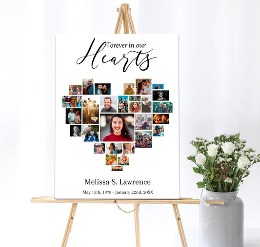 Heart Shape Funeral Service Photo Collage Template