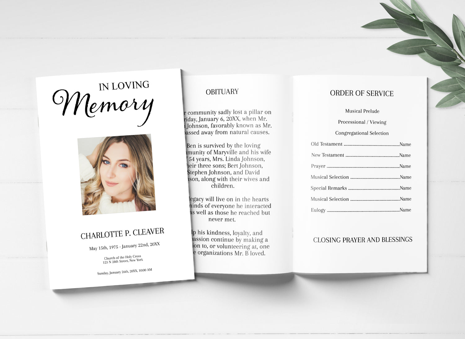 At Loving Memory Prints, we understand that planning a funeral can be both emotionally and financially exhausting. We strive to offer both affordable templates and printing options, but we understand that during this time, money can be tight, especially if the memorial service is unexpected. To help you during this difficult time, we are offering you a basic free funeral program template.
