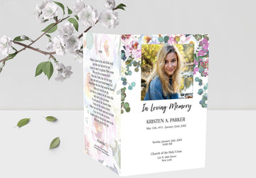 Greenery & FLoral Funeral Prayer Cards Template